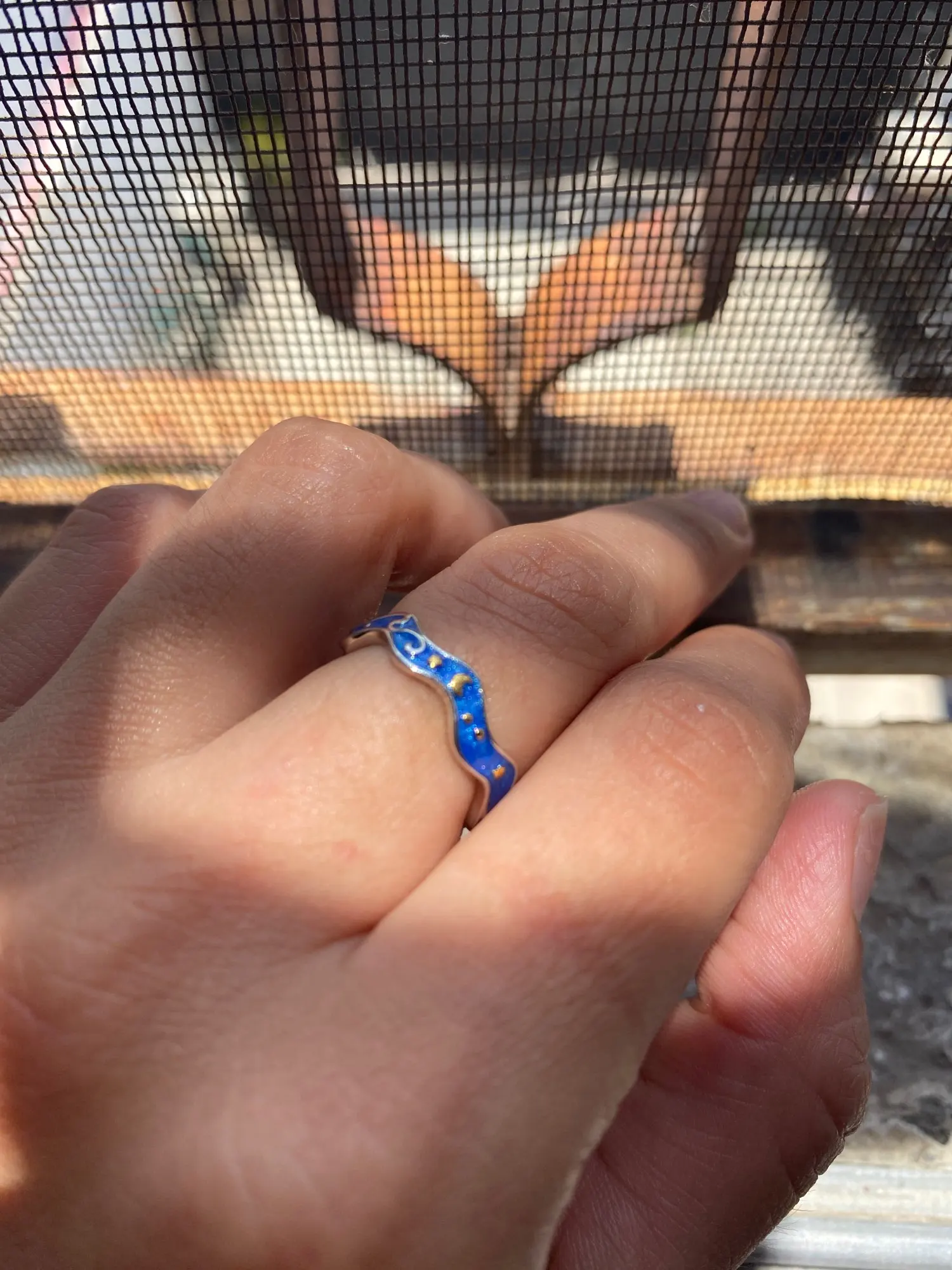 ✨ Inspiração em Van Gogh - Cada anel é uma obra de arte em si, relembrando a famosa pintura "A Noite Estrelada". Os detalhes intricados e as cores do céu noturno são fielmente representados, permitindo que você carregue uma parte da magia de Van Gogh com você.