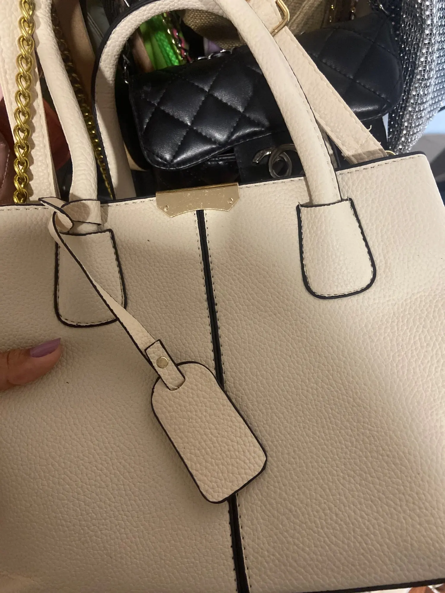 a bolsa é um charme,tamanho ideal p sair e levar o que nós mulheres precisamos dentro de uma bolsa,veio muito bem embalada,sem cheiro , acabamento perfeito,podem comprar sem medo