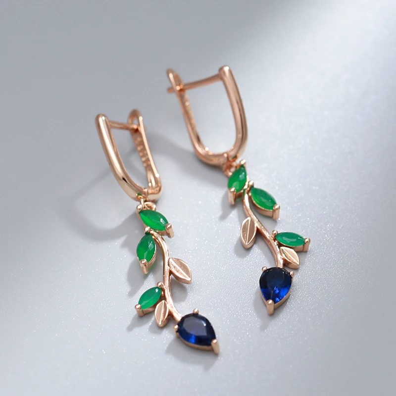 Descubra a harmonia da natureza e o brilho do ouro rosa 585 em nossos Brincos Galho de Árvore, adornados com zircônias verde e azul.