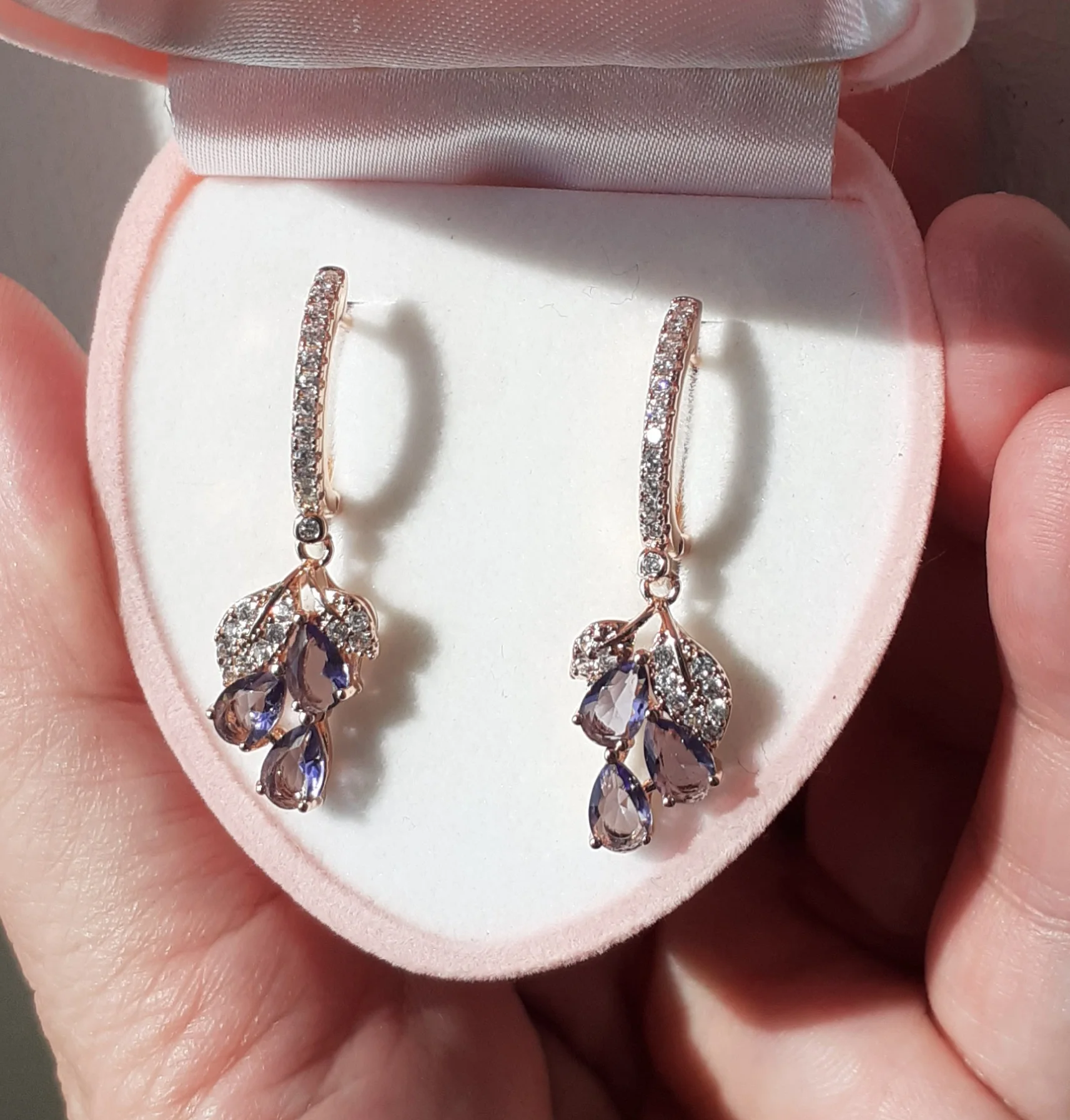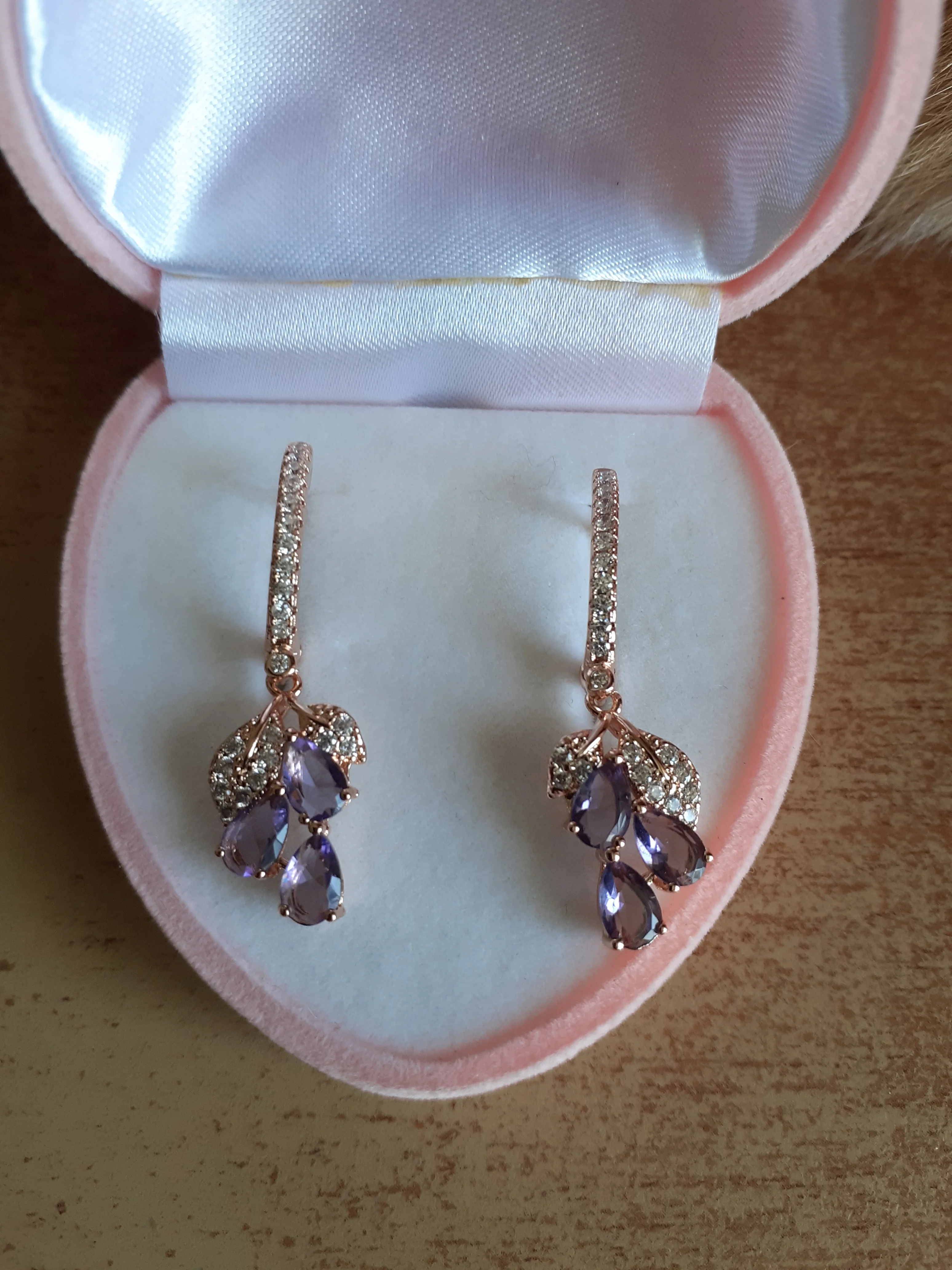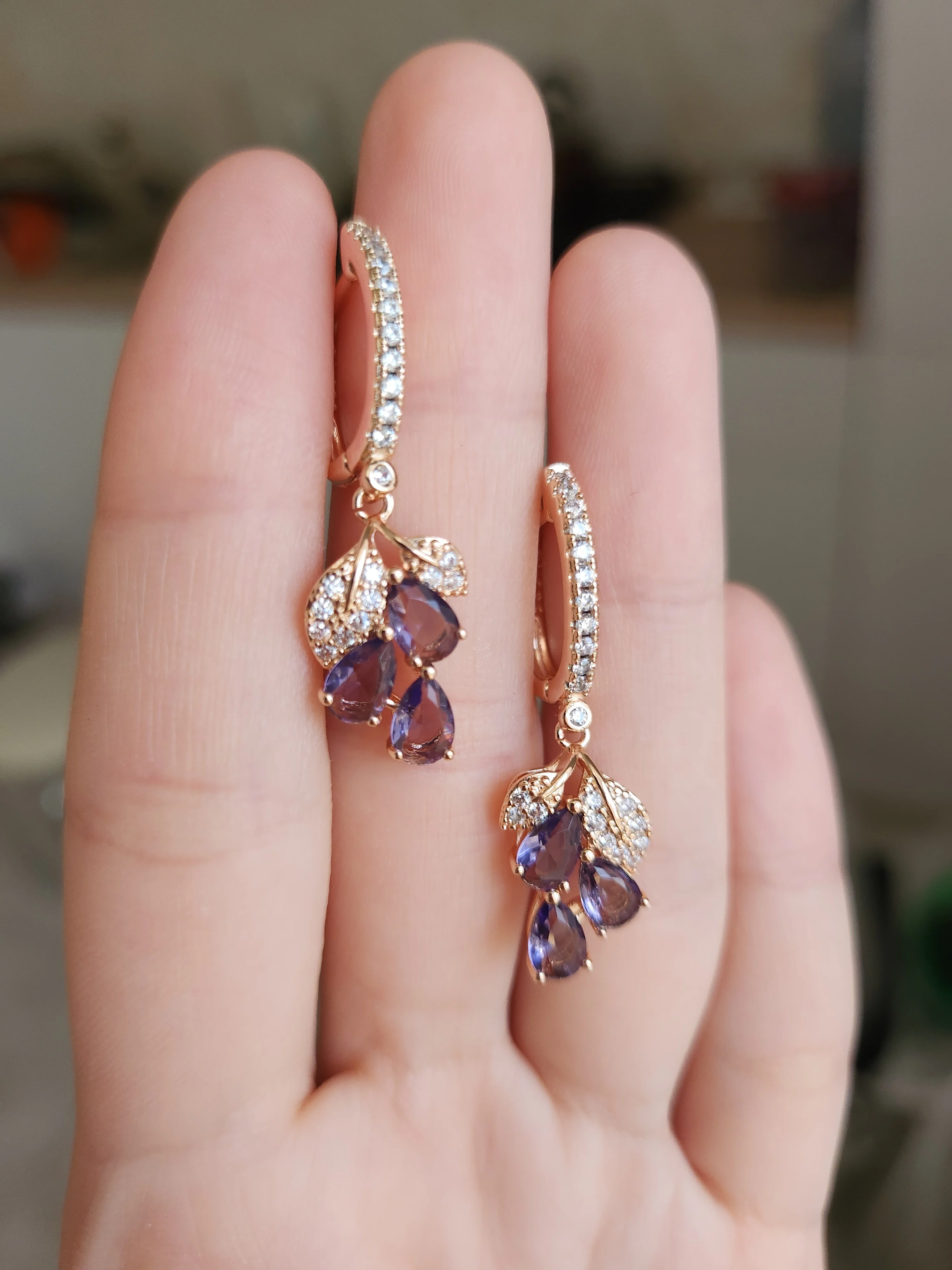 Cada par destes brincos é uma declaração de luxo e bom gosto. As zircônias roxas irradiam um brilho cativante, acrescentando um toque de extravagância ao seu visual.