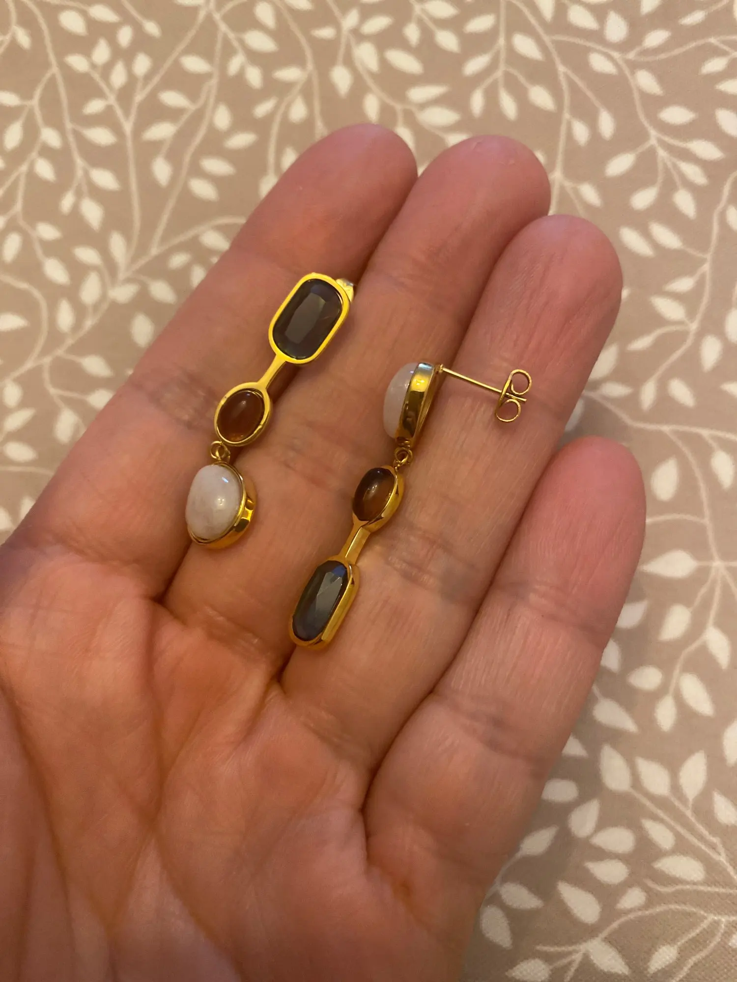 Elegância em Movimento: Nossos Brincos Banhado em Ouro com Pedra Natural Geométrica